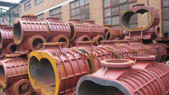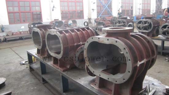 羅茨鼓風機的機殼為截面呈橢圓形的缸體,由高強度鑄鐵制成,經過時效處理。缸體上設有進、排氣孔口,外部鑄有加強筋和安裝腳,大多為整體結構。也有些大尺寸機殼采用水平中風結構,上、下殼體之間采用銷釘定位。我們對出廠所有機殼都有詳細的檢驗報告,嚴格按照行業技術標準加工,確保每臺羅茨風機在投入使用性能更加穩定可靠。